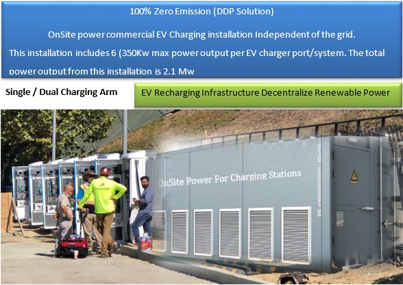 The OnSite DDP can operate as a decentralize renewable power source for BEV fleet Recharging infrastructure saving companies and or investors $8 billion dollars or more per year. A OnSite power system is imperative for any commercial fleet that utilize electric vehicles. A commercial zero emission recharging infrastructure should be designed with a minimum, of 1MW of renewable power. ©eMpasys